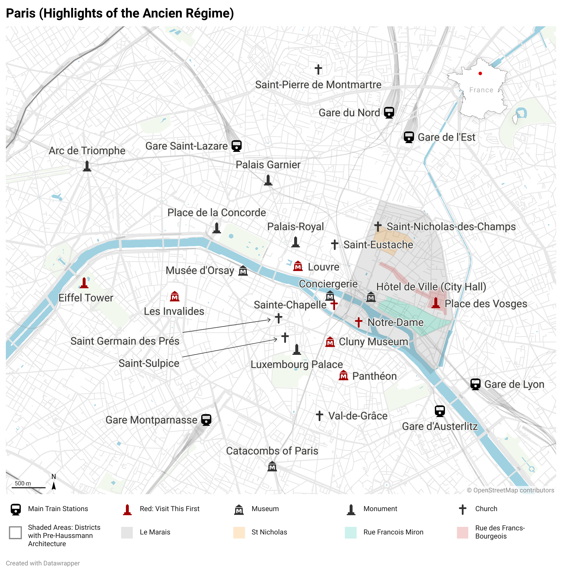 As a result, experiencing the history of “old” Paris will require interacting with the city, that is, going into museums, churches, or other monuments. This section will focus on figuring out which ones to see.